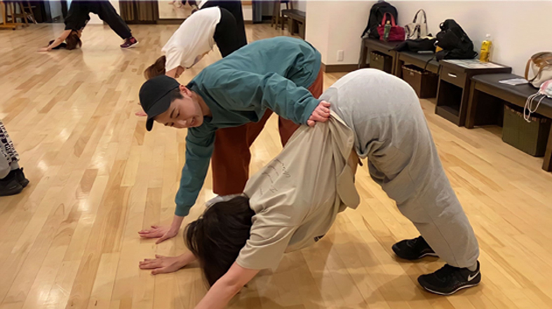 手や足の動きをゆっくり分かりやすく指導し、スローモーションとカウントで少しずつ身体に振付を慣らしてから、