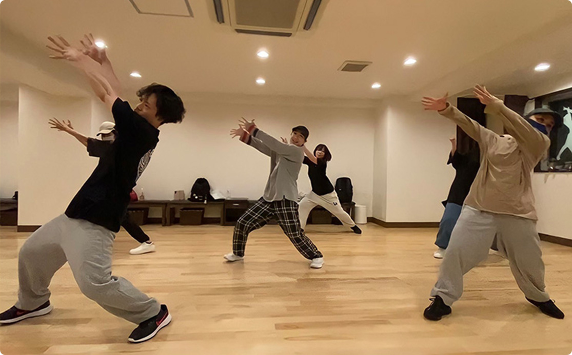ストレッチ、アイソレーション、リズムトレーニング、ステップをみっちり指導し、基礎の動きを意識した振付を行っていきます。